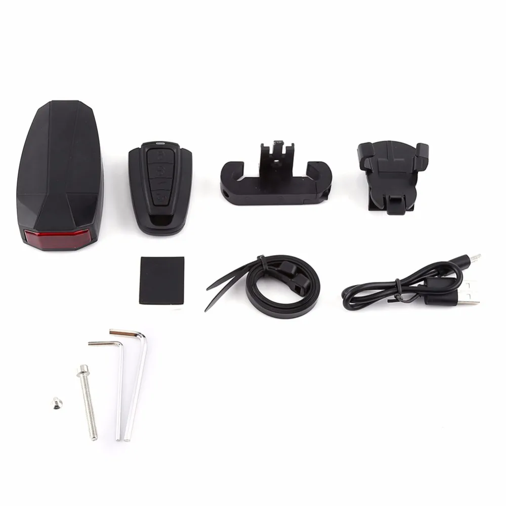 This 4 in 1 Bike Lock comes with an integrated intelligent alarm, audible and visual alarm taillights, wireless bell, wireless searching at night and other functions in one multifunction bicycle taillights, by remote control to achieve control of all functions. It uses hidden mounting design and USB charging mode, not only easy to operate, install and Lightweight appearance but also highly Portability, waterproof and weatherproof.