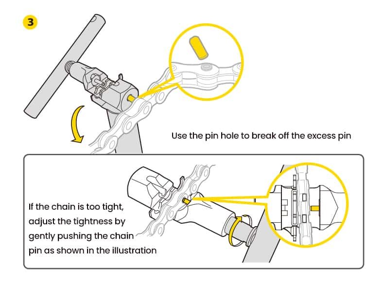 chain pin is cut, it must be tightened with a stopper to ensure the chain is tightly coupled