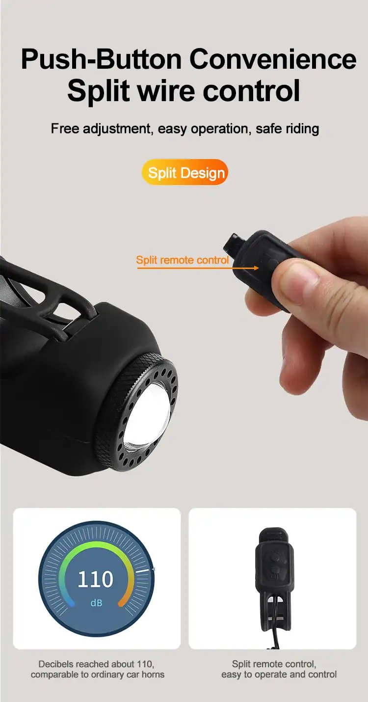 Unmatched Convenience: Our unique split-design remote control mounts anywhere on your handlebars for instant, thumb-triggered access to both the horn and light modes, keeping your hands safely on the bars.