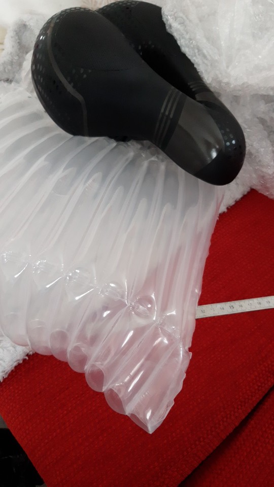 Product arrived well packaged. Very thick and fluffy saddle it will be a pleasure to bike