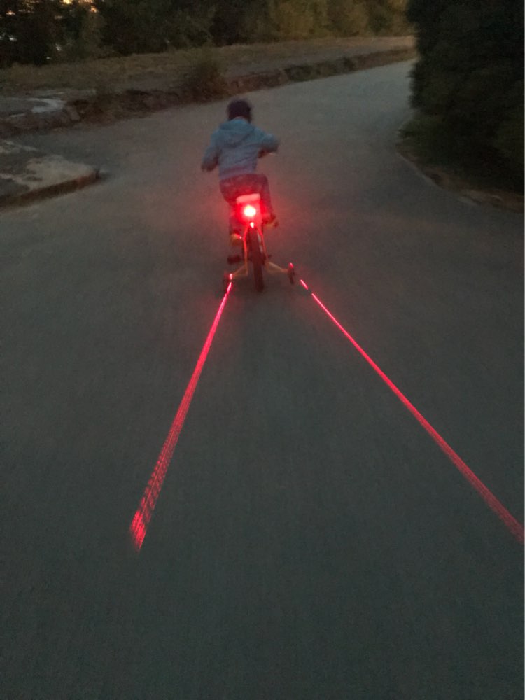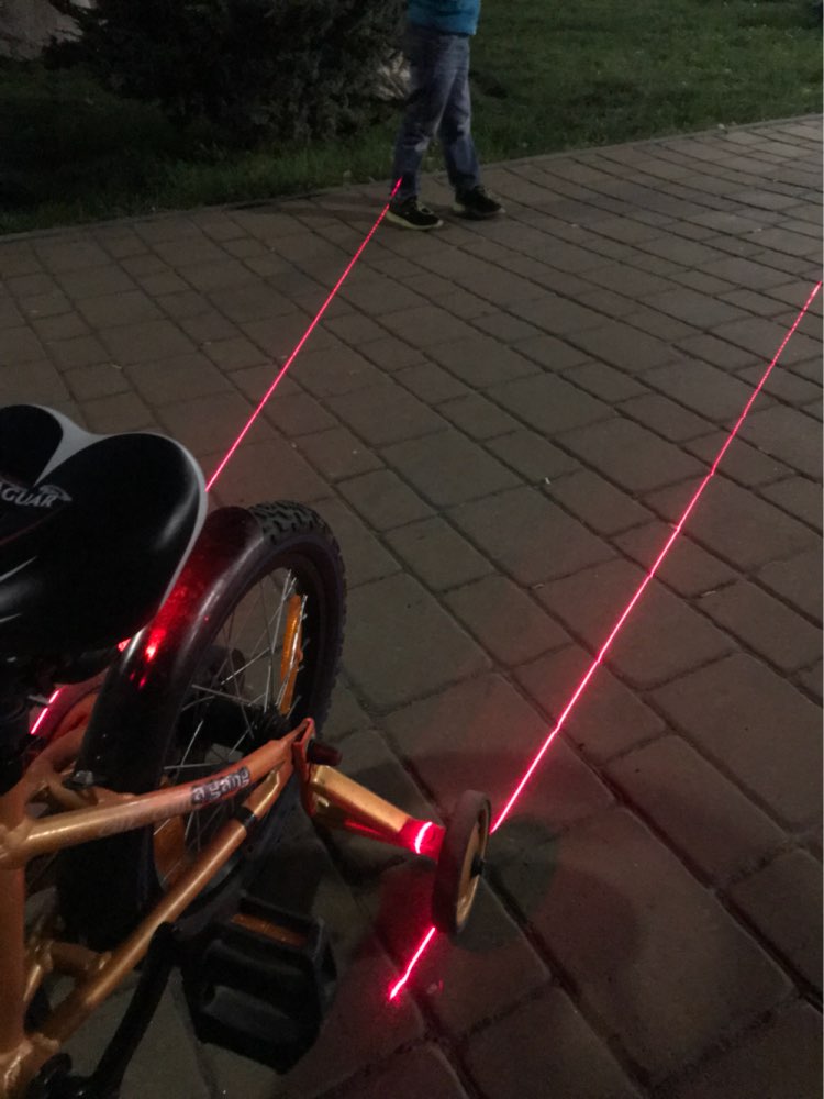lamp cool! to light the mount слабовато little, set which seatpost but keeps like normal. afraid of when ordering, laser that will not work, but all is excellent. children bicycle to put) pleased son, pay attention to children all night outdoor strip laser))) good goods recommend store