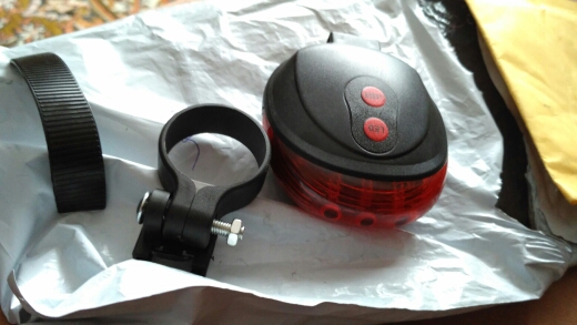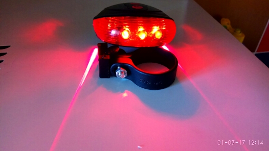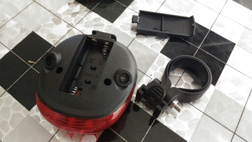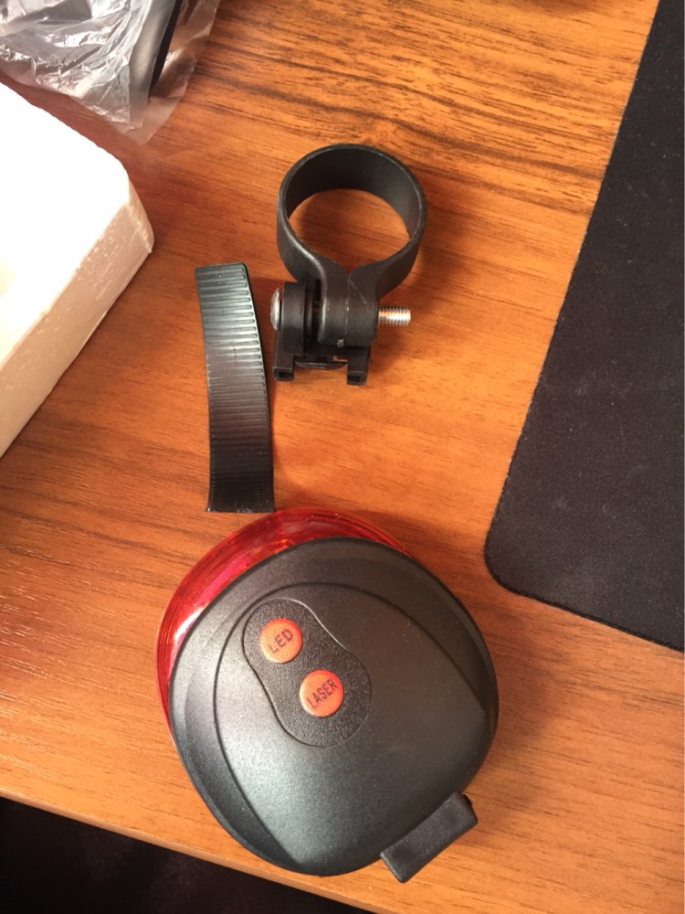 Very cool lamp! bright! 6 modes of operation lamp two modes of laser. AAA powered by two AA batteries (not included). the ring for seatpost very much delayed tightly. come for a month, packed in a box. I advise everyone, a wonderful thing!