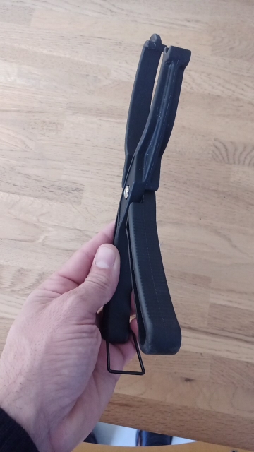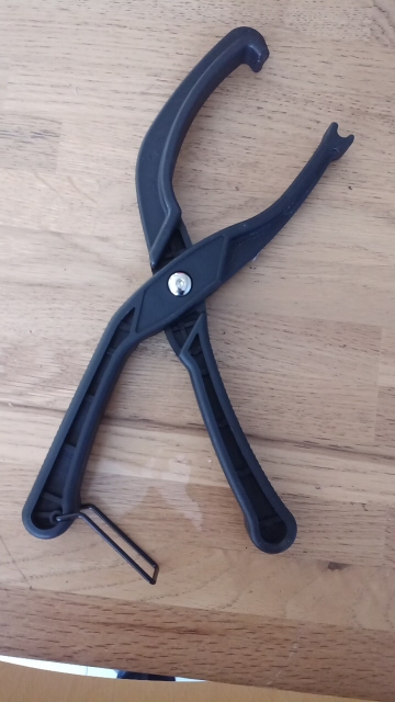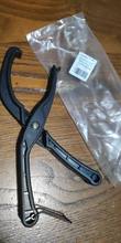 The Bicycle Tire Repair Kit makes light work of tight tire beads; simply position the slotted jaw onto the opposing rim and place the hook under the stubborn bead, then roll the bead over the rim into place.