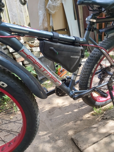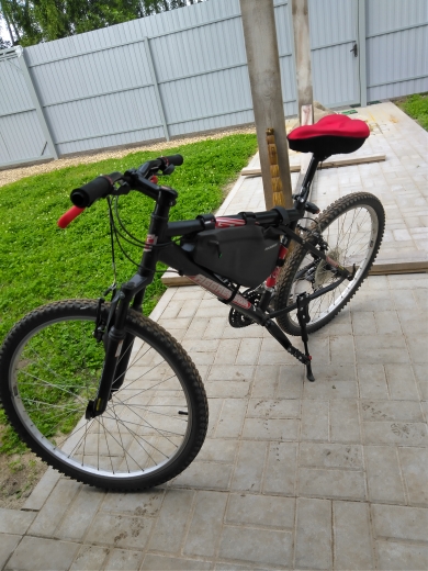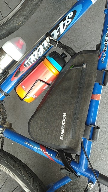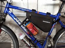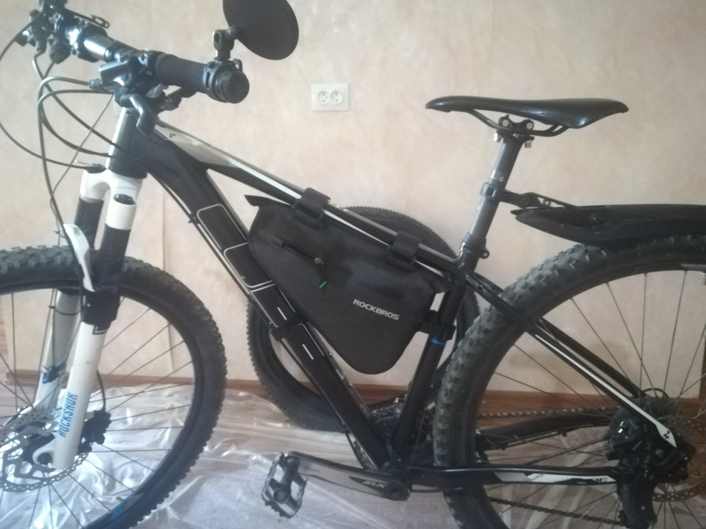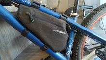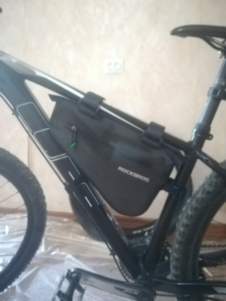 Excellent bag, waterproof, fit-a bottle of water 0,5 and pieces of 12 different bars entered quietly. Keeps on the bike confidently, does not walk. My husband wanted the same