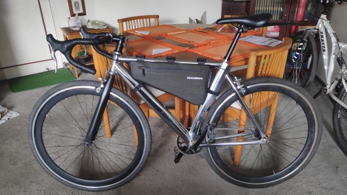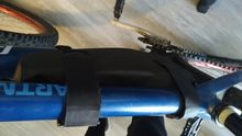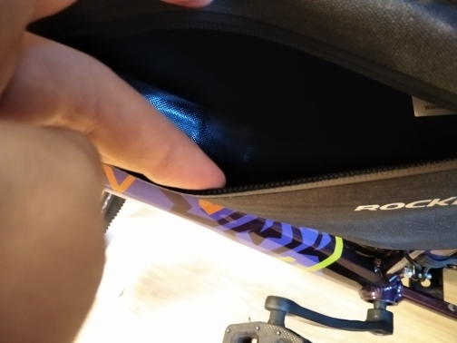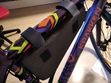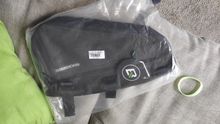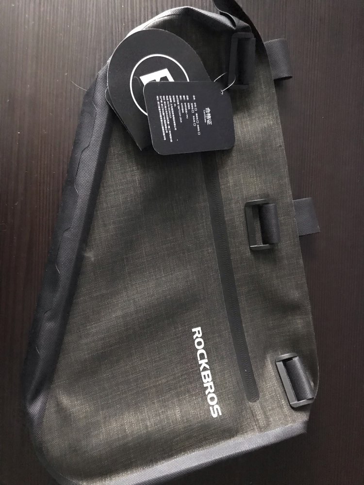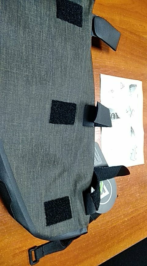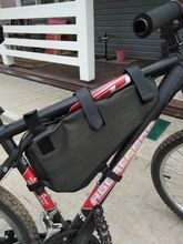Rugged frame bag. After a month of use it is demonstrated excellent construction. The fabric is hard and waterproof. The shoelace which the firm to the down tube l I replaced with one that suits my needs, having many inputs to tie it adapts to various needs. Unique neo I would have preferred the zipper on the right visa you are right-handed, but it is probably thought just for this on the left side (as with the right pedals keep the steering and uses the left to open the zipper and take what you need). Everyway good product. I took also the large version.