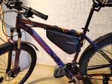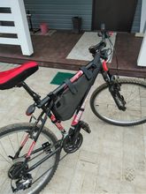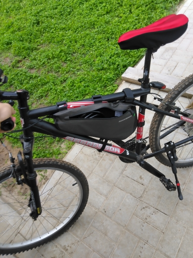 Доставка меньше месяца, службой DPD, пришла в обычной коробке. Сверху сумки безобразный наружный шов,но по факту, он упирается в раму, так что не критично. Крепится на кучу липучек, устойчиво. Отсек один, достаточно вместительный. При езде дискомфорта нет. Если тросики под рамой, сильно не затягивайте липучки, будет мешать. Материалы на ощупь качественные, сшито хорошо. В обычных магазинах подобные сумки стоят дороже, так что покупка оправдана, советую. Салют!