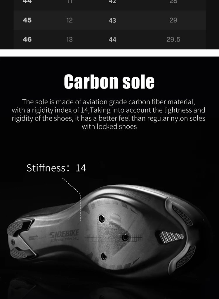 - Carbon fiber soles are incredibly stiff, ensuring minimal energy loss when pedaling.