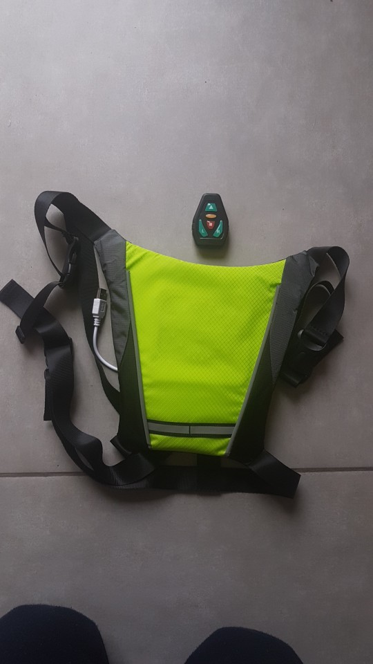 LED vest with remote control Arrived in 16 working days instead of at least 1 month announced... So I am very pleasantly surprised and very very satisfied. Congratulations to the Traveling World Store. When to the product: I am really very happy. The object is in accordance with the description and is of quality. The functional side of the product did not disappoint me, especially the included USB socket and put in the internal zipper pocket. Important thing: I was reassured by a fear that I had: the LEDs are really very bright. You must also avoid staring at the leds at the risk of hurting your eyes! Now, it remains to know if this vest will hold in time and for my daily use.