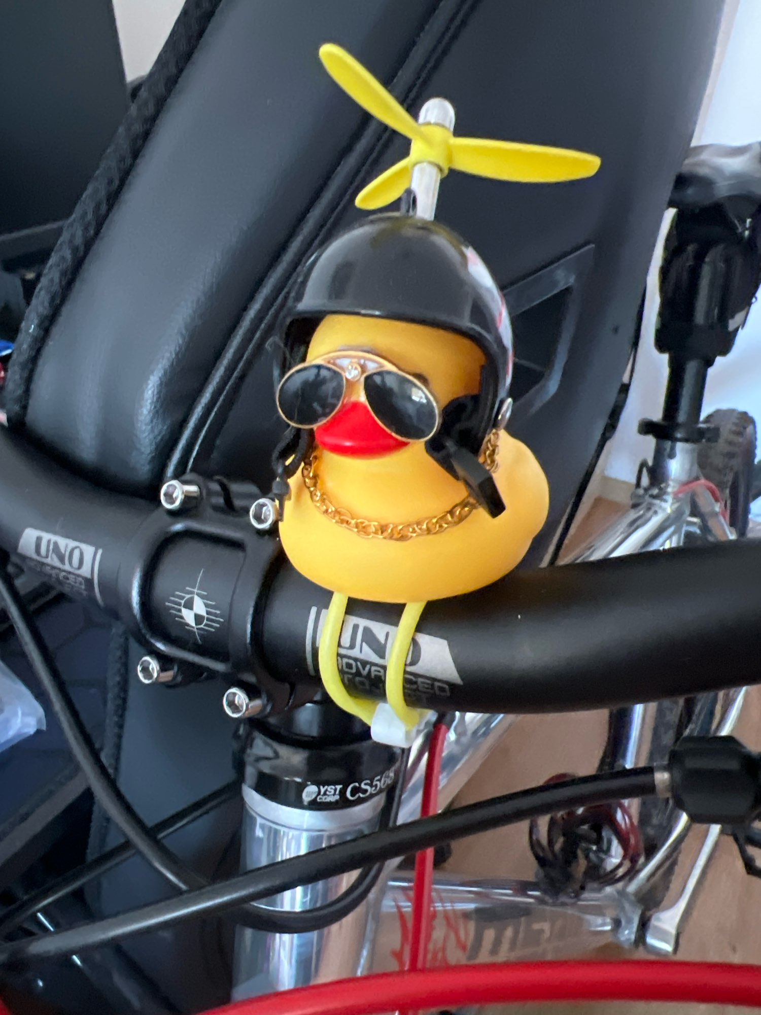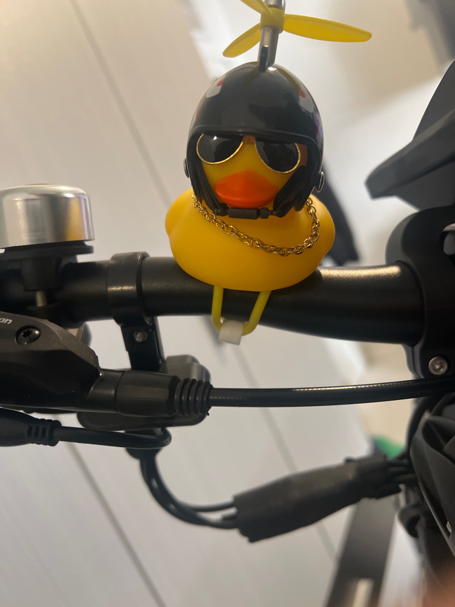 The duck is great, great fun, his propeller rotates as he advances. Is perfect to decorate the bike.