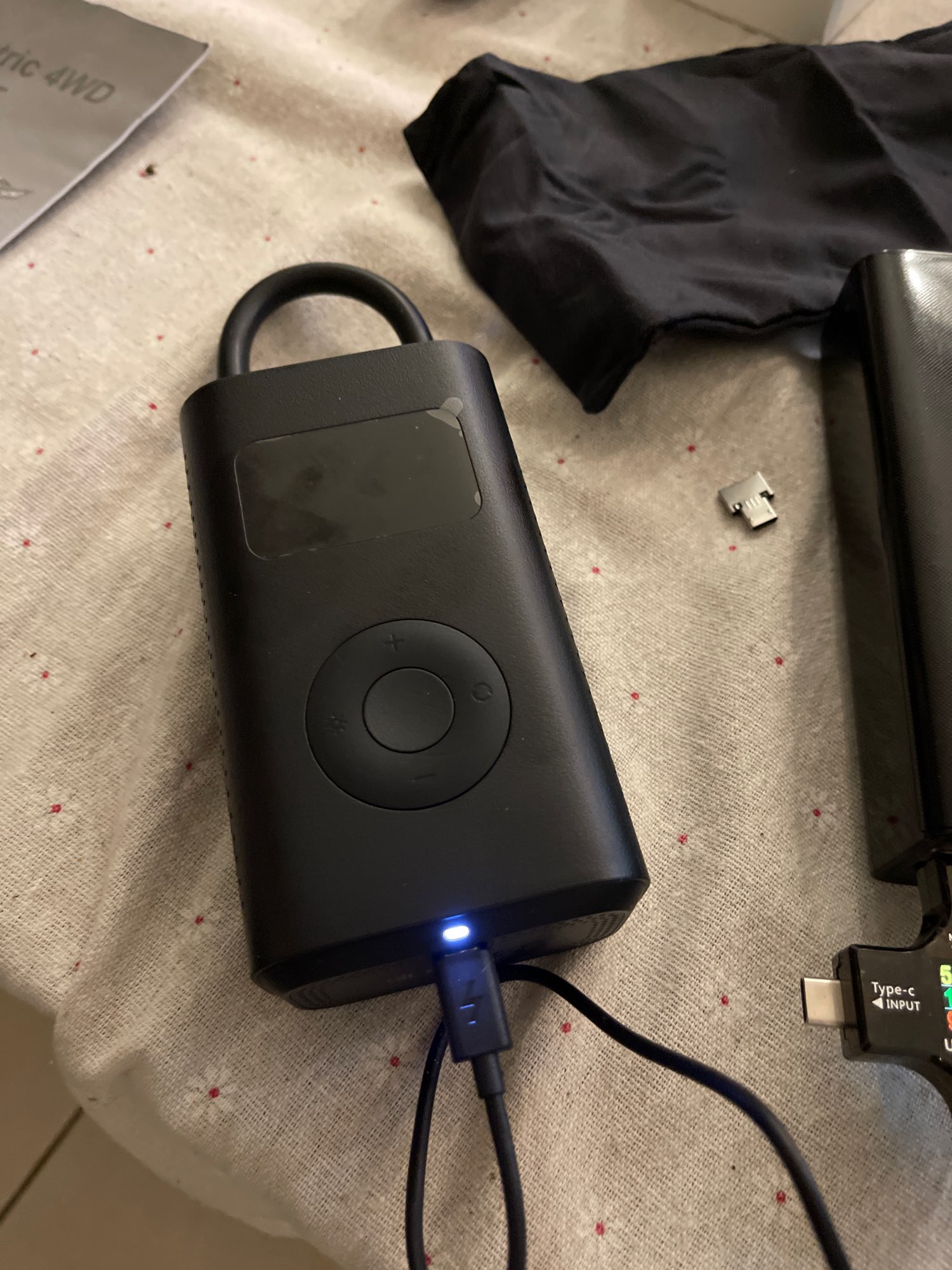 He arrived very fast (it usually takes 25 days to Chile, it took only 11 days). The product is in perfect condition, includes USB cable for charging, a cover and adapter for inflating balls. I already tested it and inflated the wheels of my scooter to 47 psi smoothly. Very good and recommended.