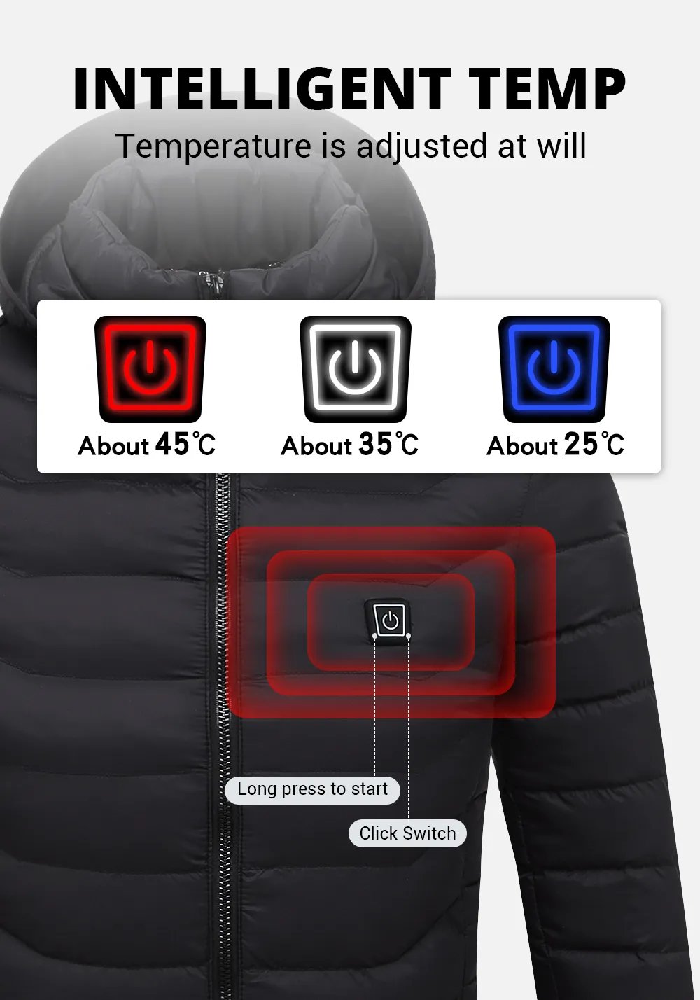 Wearing a lot of clothes in winter makes you feel uncomfortable and bulky. Let’s try our Warm premium heated jacket. It has a warmth function, which not only warms your stomach, back, neck, waist, shoulder, and abdomen but also promotes blood circulation, and relieves the pain in muscles. It can help you easily live through a whole winter without wearing bulky clothes under cold conditions. Besides, our product is waterproof and breathable to keep you warm anywhere such as enjoying a snowmobile, motorcycle, mountain, camping, and so on. This will be an ideal gift for family members, and friends. Shop now!