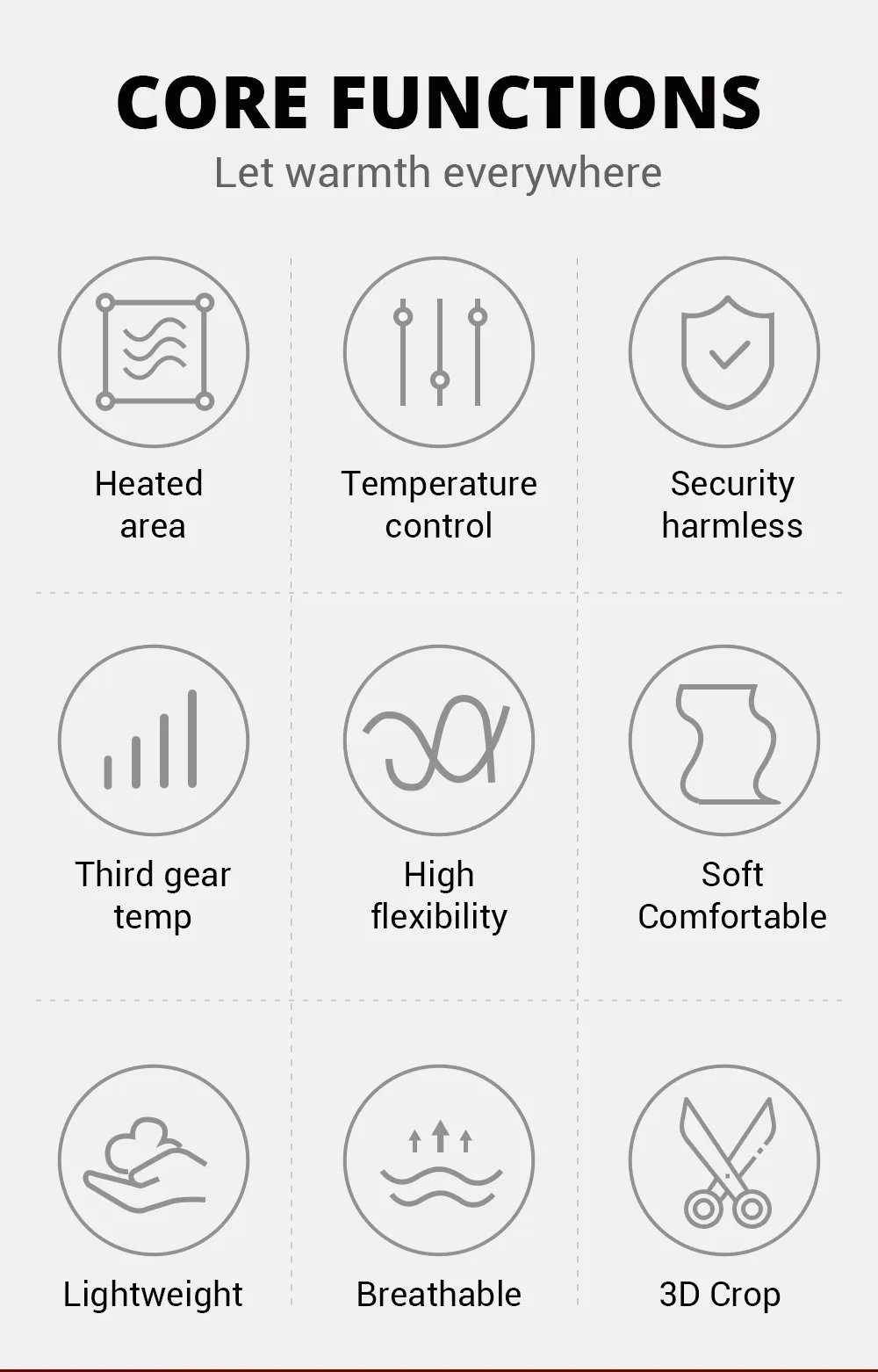 Heating underwear can help improve blood circulation and strengthen metabolism. It is very suitable for people who are afraid of cold, Raynaud’s disease, arthritis, poor blood circulation and stiff joints.