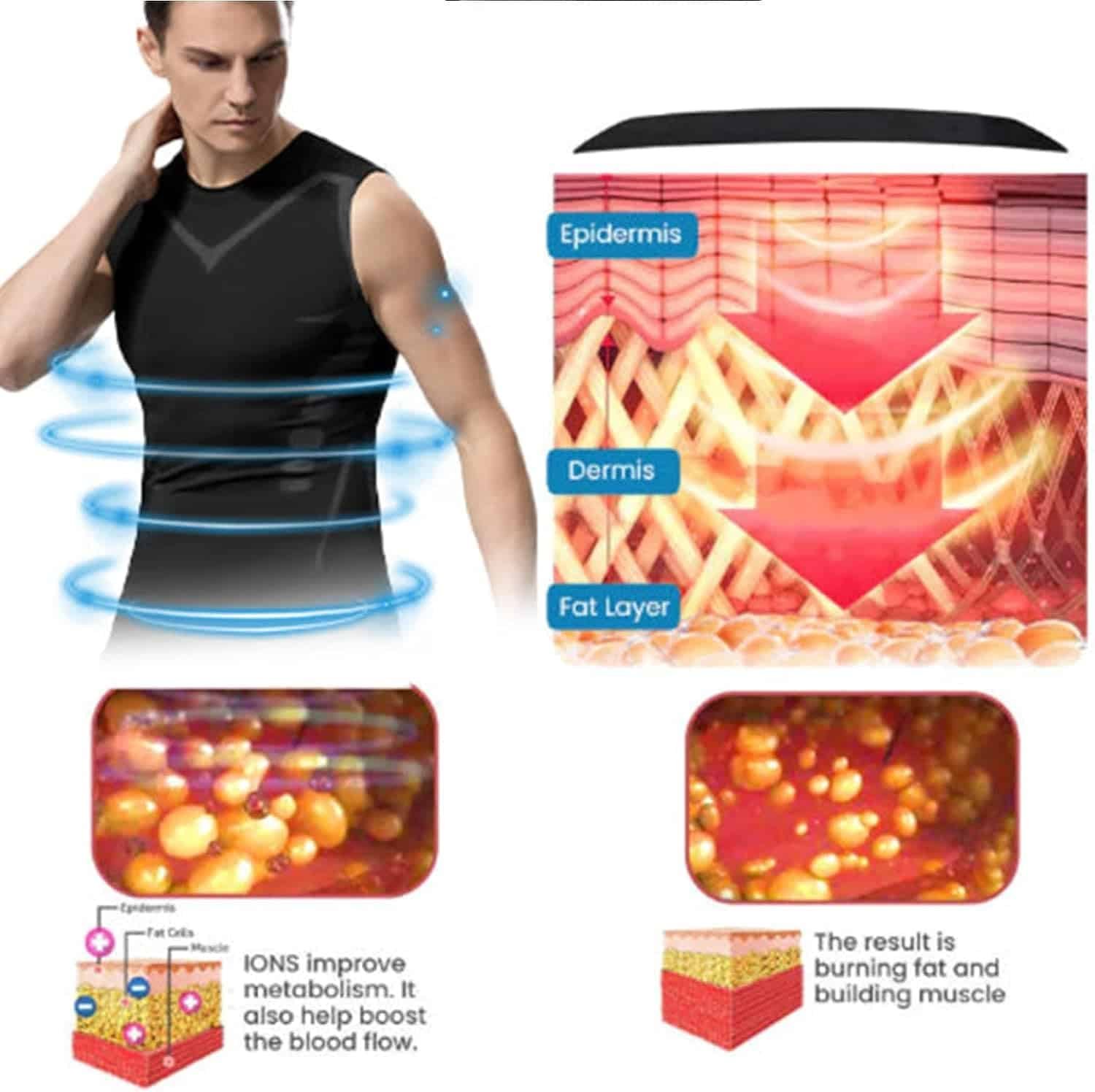 Ionic shaping vest: this ionic shaping vest uses advanced compression technology to shape and define your muscles, aimed at enhancing male charm. It Can Regulate Blood Flow And Vascular Function, . It Effectively Helps You Reduce Overall Body Weight, Decrease Accumulation Of Chest Fat Tissue, And Build Perfect Chest And Abdominal Muscles.
