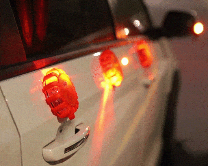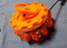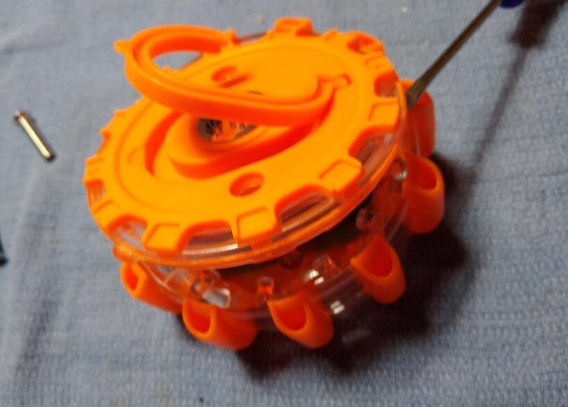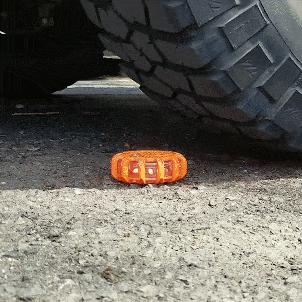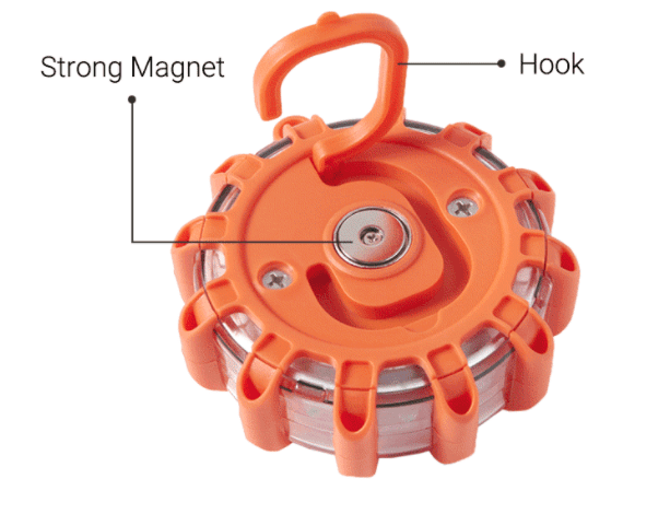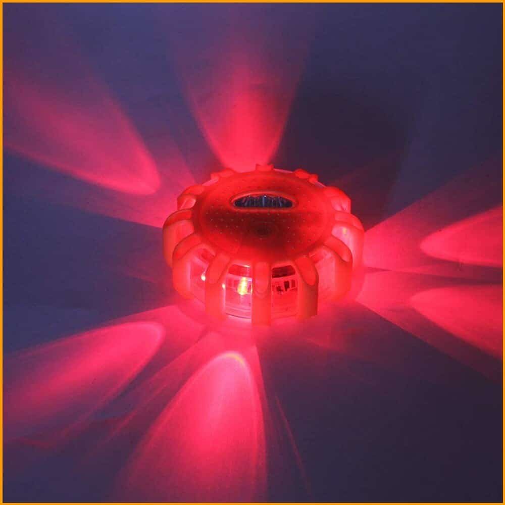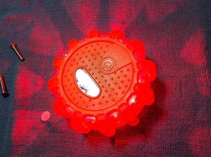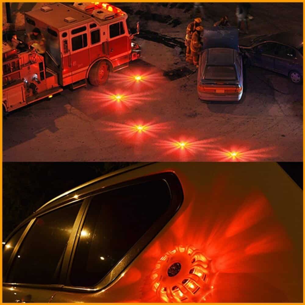 At first when I got this I thought it was going to be orange lights but they are RED lights and they are brighter than other LED road flares that I have. The changing of batteries are a lot easier to access than other brands. I already ran over this with my car and still working great!