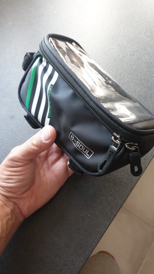 Great bag! 7 iPhone easily with a margin of fit, fit and 10. qualitatively made bag. I pay attention that the average Velcro is long, designed for a double frame. If you need to attach one pipe of the frame-you have to shorten the Velcro and sew, but this is a trifle.