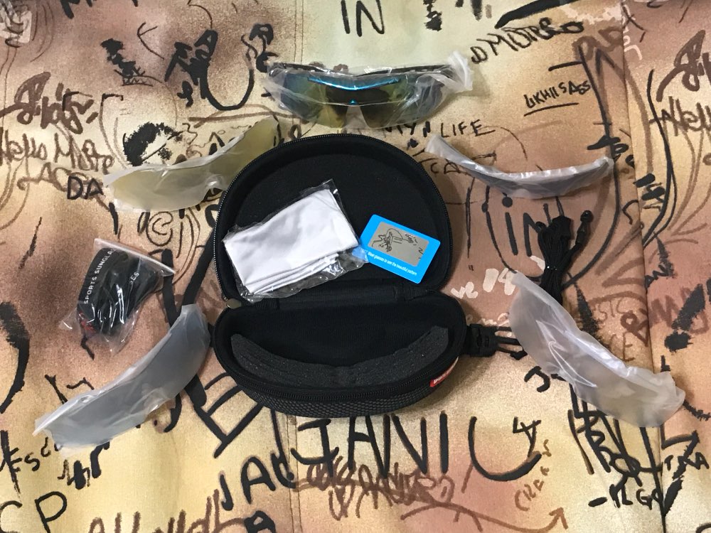 good quality glasses, oakley almost, but with logo. five filters rubber band, all suitable. but big ie men normal, sit good. girls but big.
