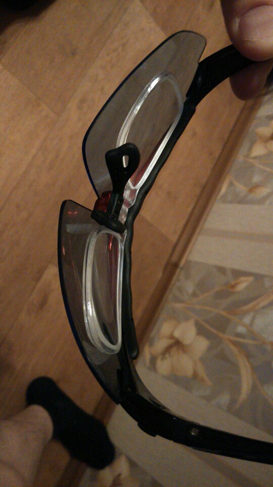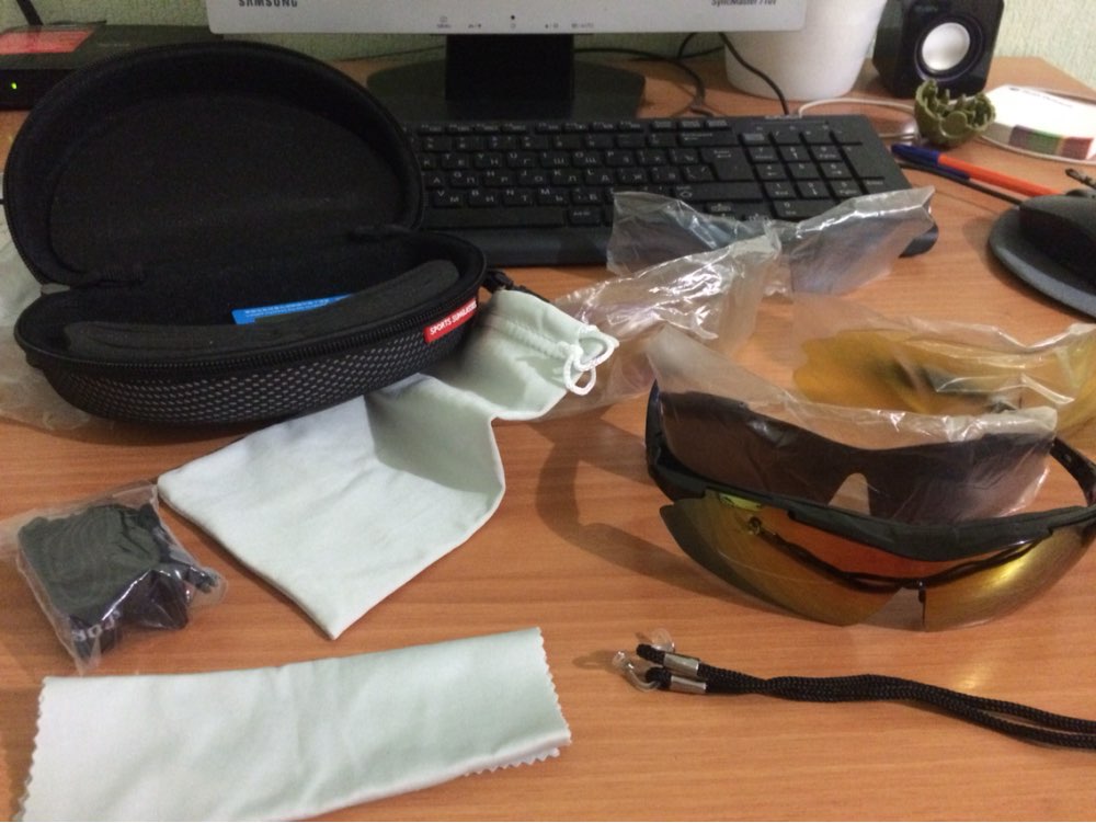 The glasses to Vladimir reached in the past month. condition is very good. sit perfectly do not hang out. nose pads flexible set up the nose holder. gum for glasses cool thing: points better sit do not fall out and do not fall when moving (for the scooter is a miracle). Of the minuses: black lenses hang in screwed down condition horrible fixture rope with glasses: just does not hold, fly out of the loop. pile of cellophane inside (well, this is my corral :-)) so it was hard to guess how to change the bow on the gum. it was just: need to click on a small button that holds the handle, and spin across the connection shackle. then it is easy to get. generally satisfied with the kit. you can take)
