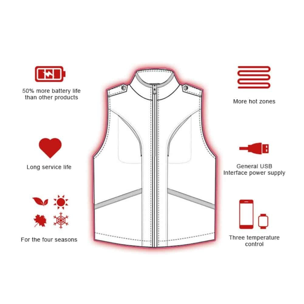 The USB Charging Heated Vest is designed to keep you warm in extreme temperatures, making it ideal for outdoor activities. Here are the key features:
